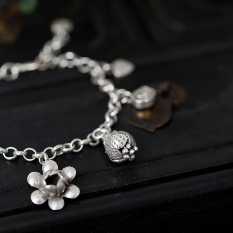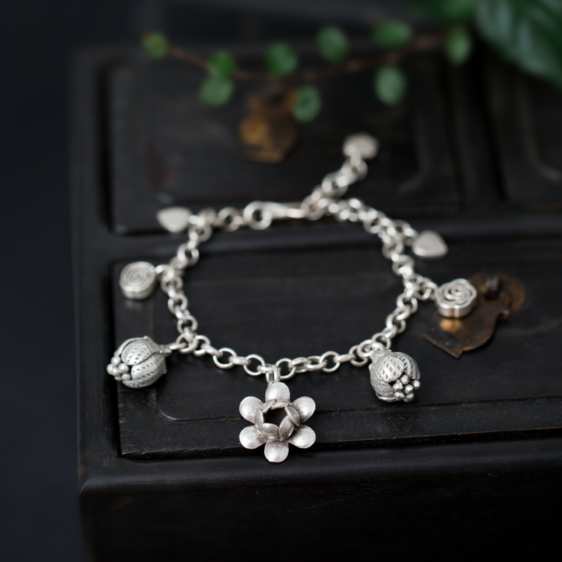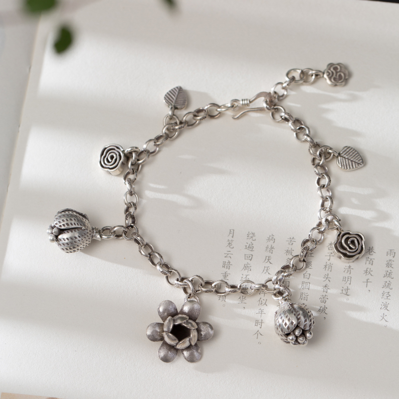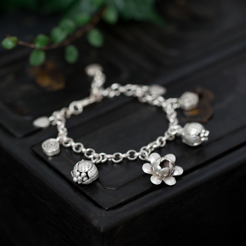 (Dream ten light) afternoon tea ten light Thai handmade pure silver flowers with small leaves hanging by hand