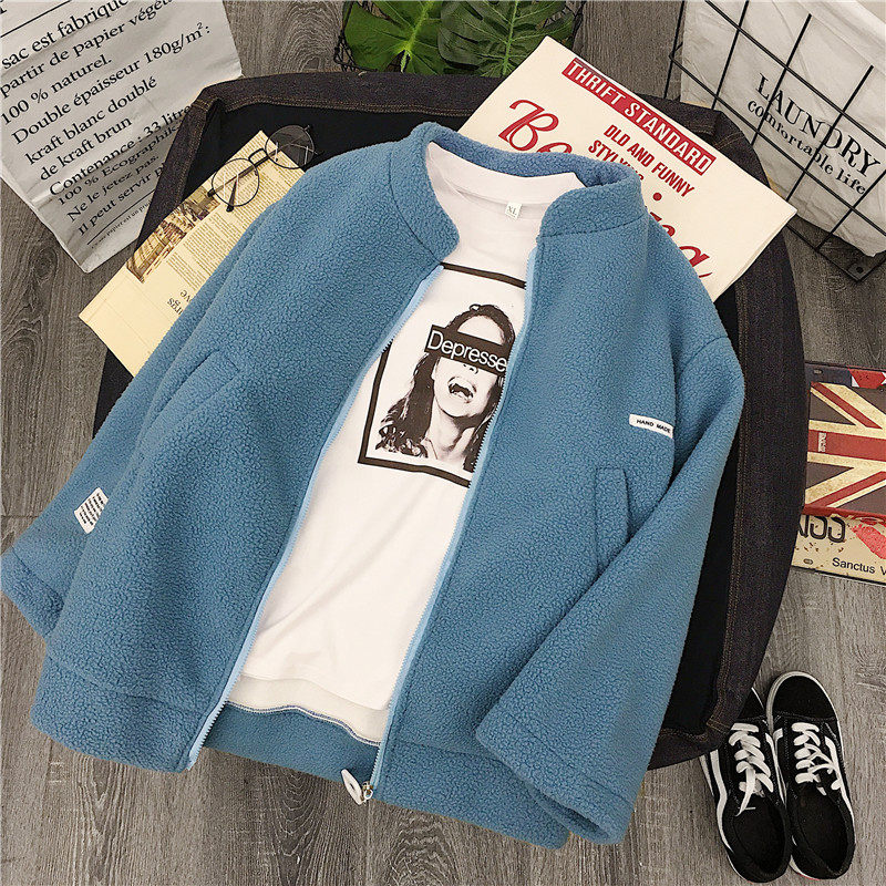 Autumn and winter Korean version of Joker medium-and long-term chic imitation lamb cashmere thickened students loose large size hairy coat women