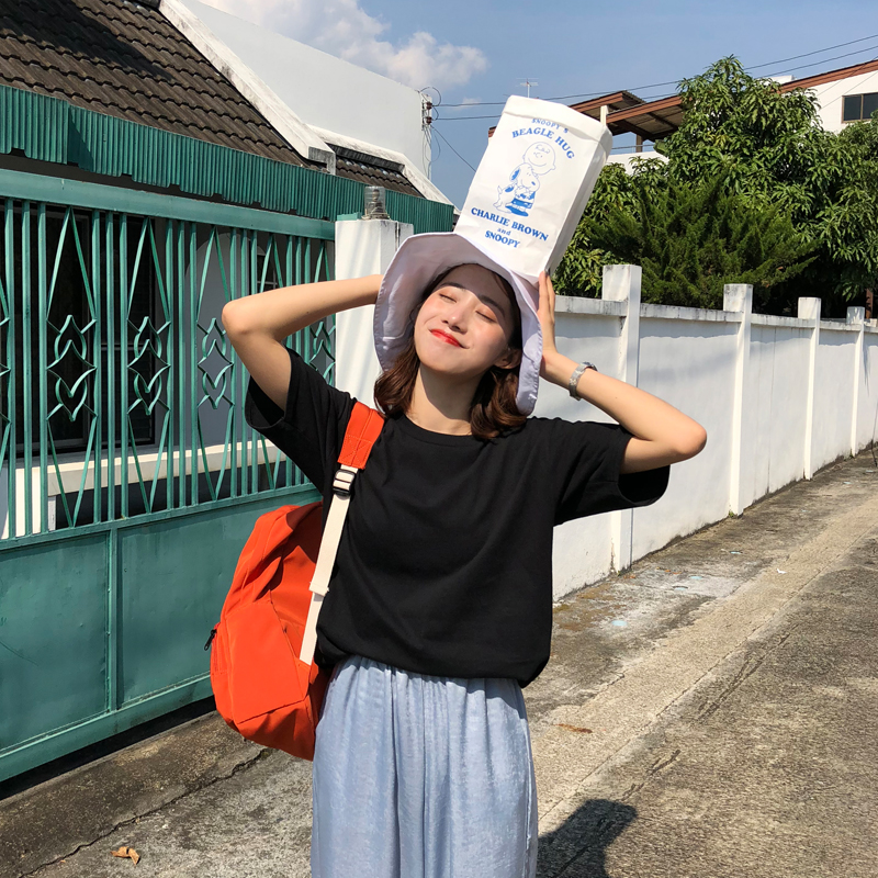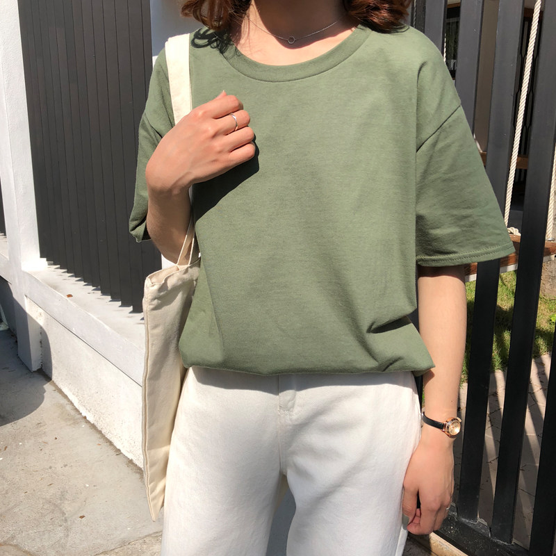 2022 White Pure Cotton Inner Lap Dresses Woman Spring Autumn Inner Lap Short Sleeve T-Shirt Jacket Low Collar Black Pure Color Ins Tide
