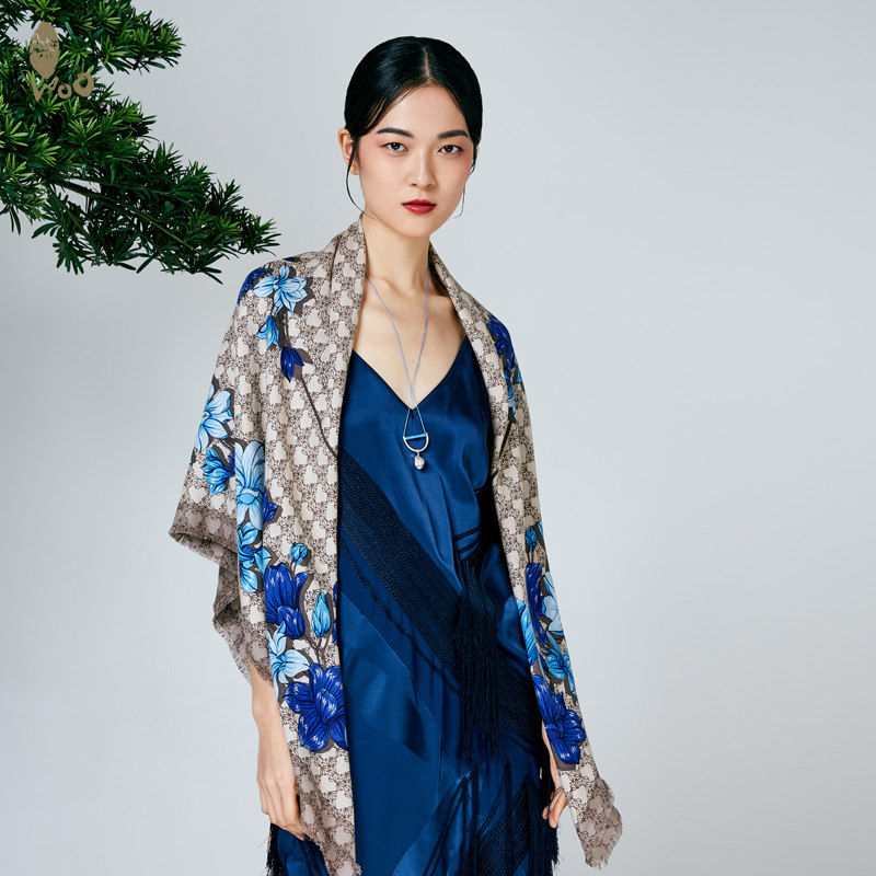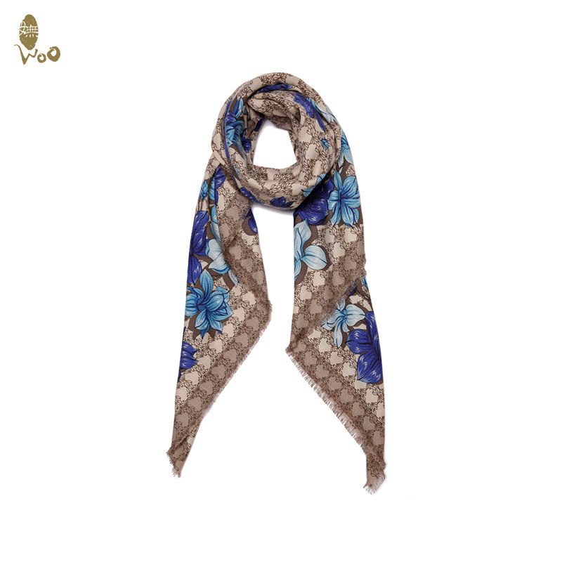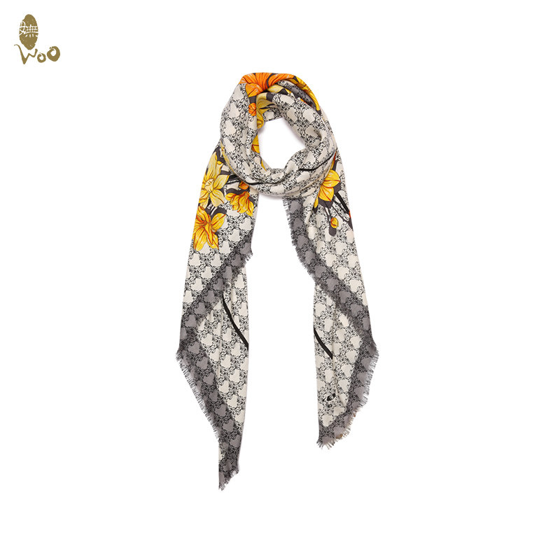 Woo charming Yulan silk silk printing scarf spring and summer with cashmere large towel thin shawl