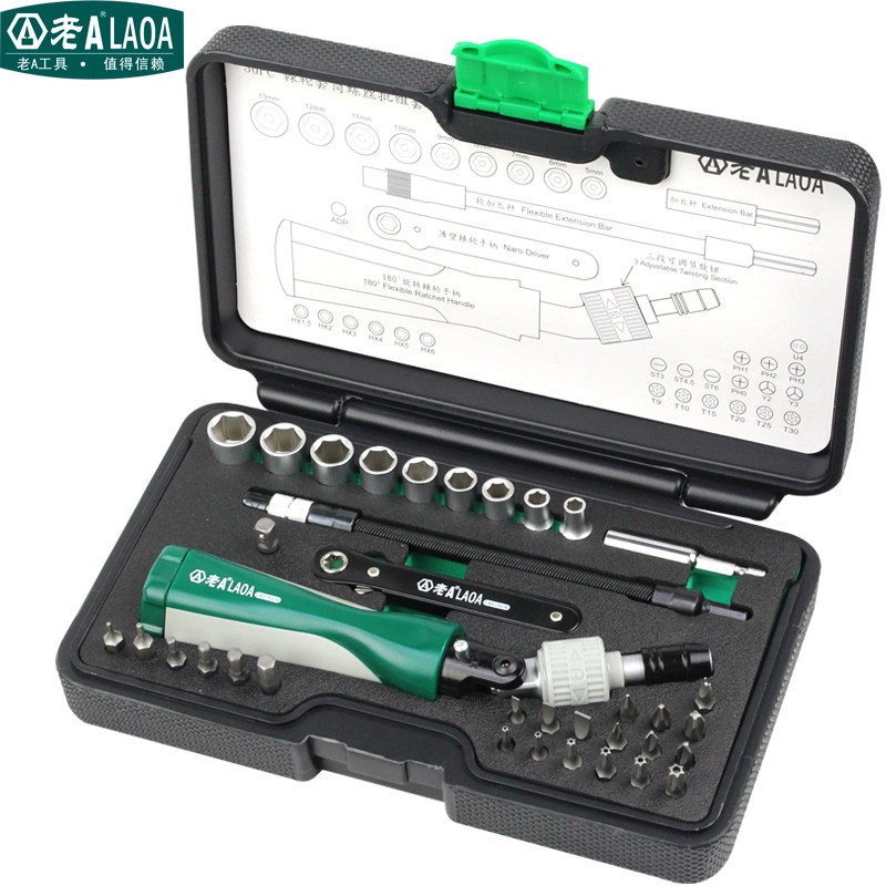 Old A ratchet screwdriver elbow screw screwdriver set L type 36 all-in-one screwdriver driver LA615036
