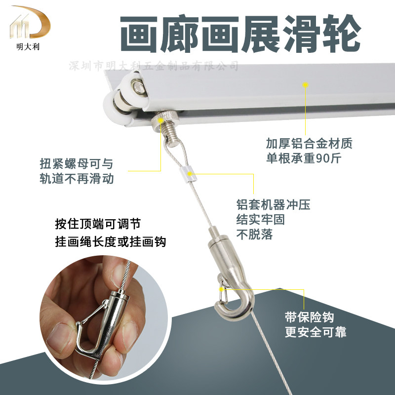 New pulley track steel wire rope hanging painting line rope painting exhibition gallery adjustable listing hook rail groove hanger painting hook-Taobao