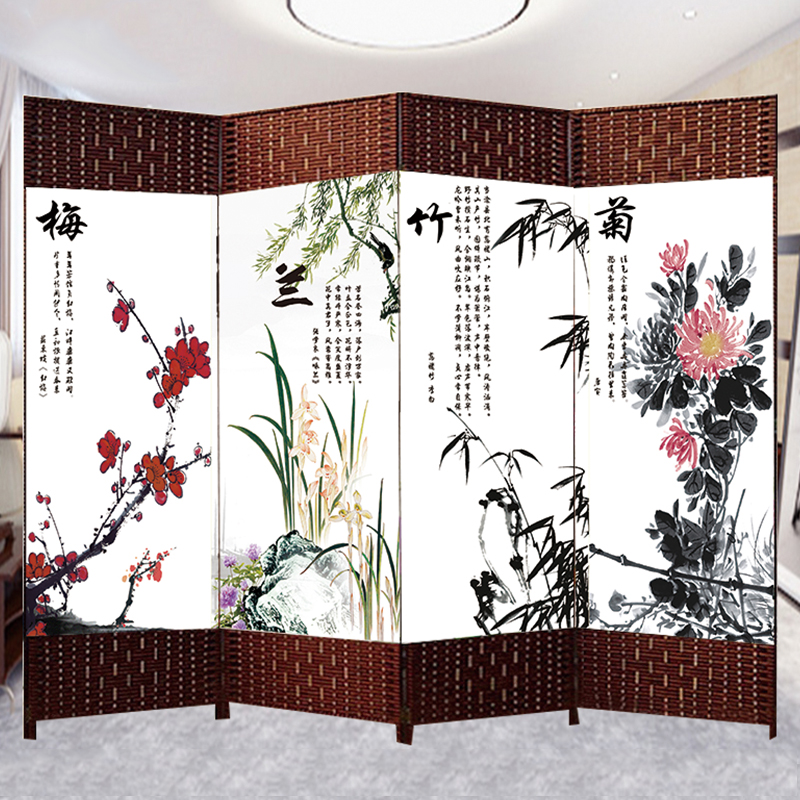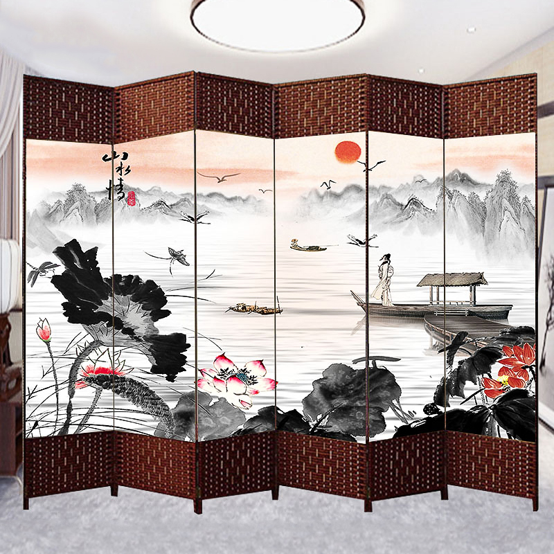 Rent partition artifact solid wood bedroom screen folding mobile cloth economical push-pull fabric simple living room Nordic