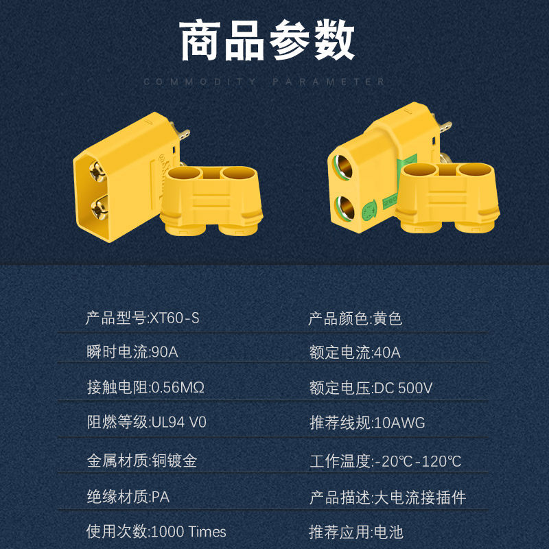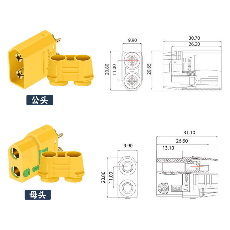 XT90-S male head (no resistance) XT90-S female head (with resistance) XT90-S male and female head (set)