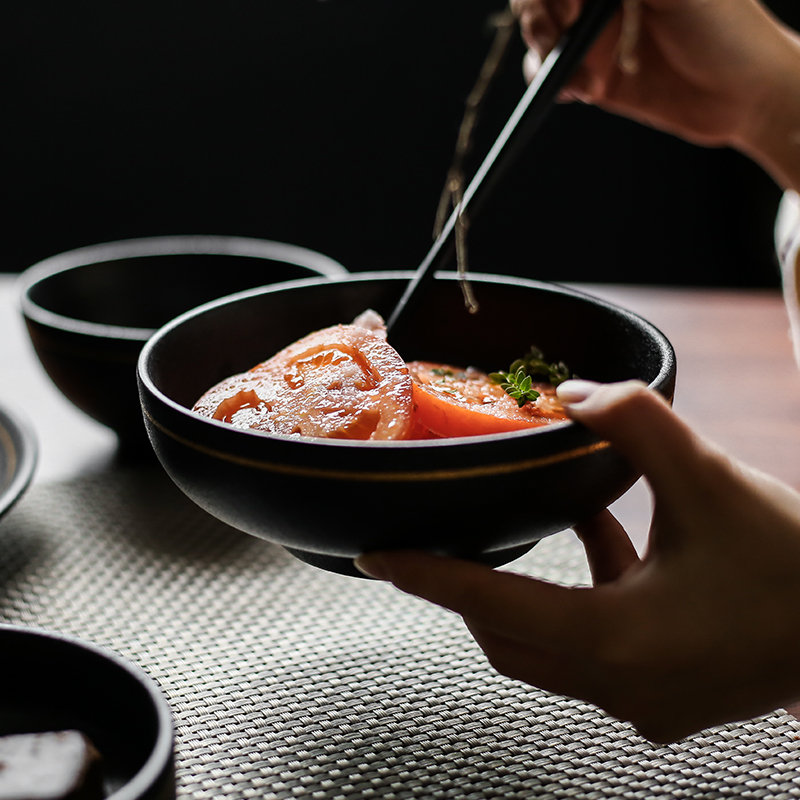 Wujin Japanese tableware Ceramic rice bowl Salad bowl Retro soup bowl Vegetable bowl Noodle bowl Fruit salad bowl Household bowl
