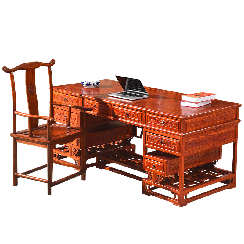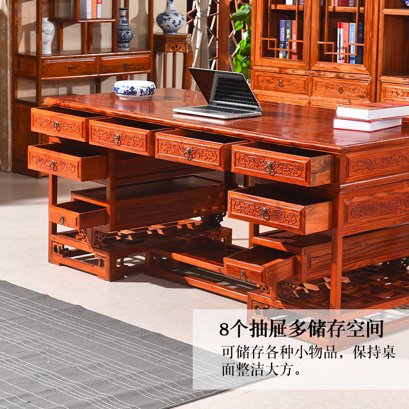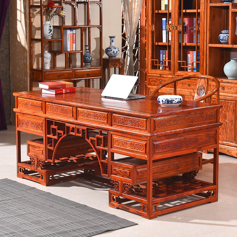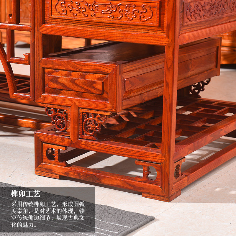 New Chinese style solid wood desk carved yellow pear color auspicious cloud Ming and Qing classical home hotel teahouse palace ancient rhyme