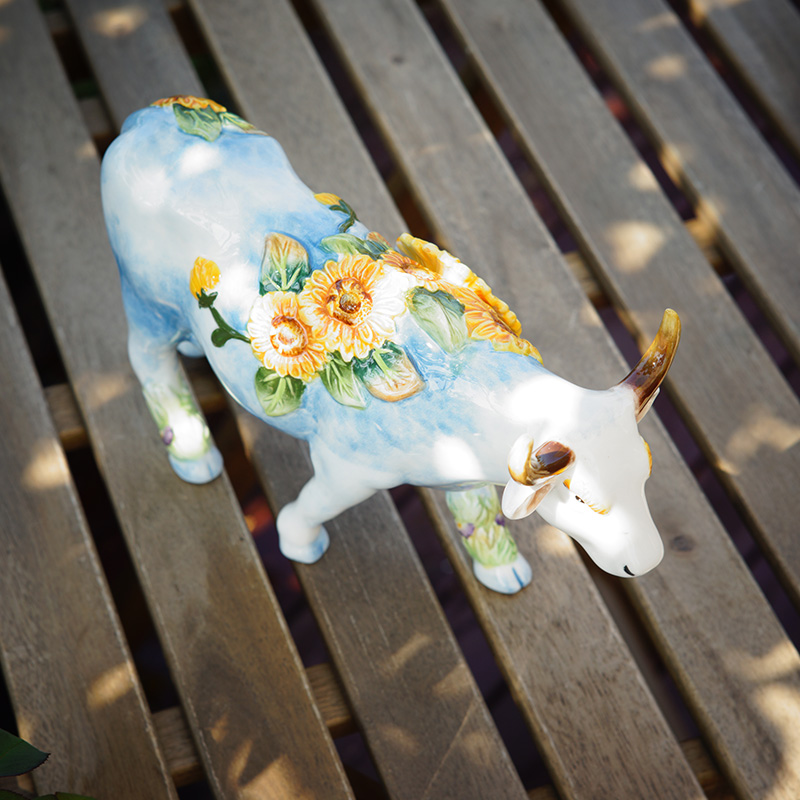 Living room Desktop Ceramics Small Number Bull American Countryside Fields Garden Animals Sunflowers Xuanguan Wine Cabinet Home Residence Ornament Swing