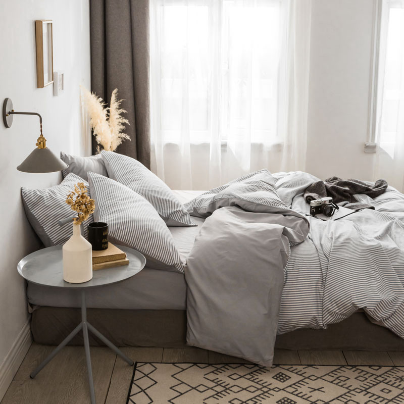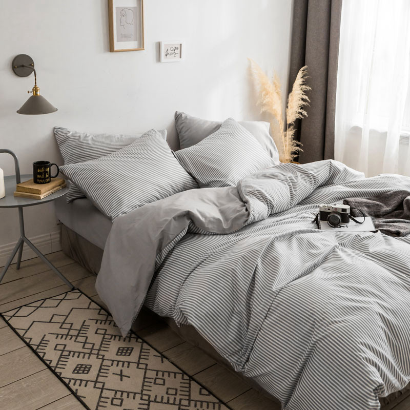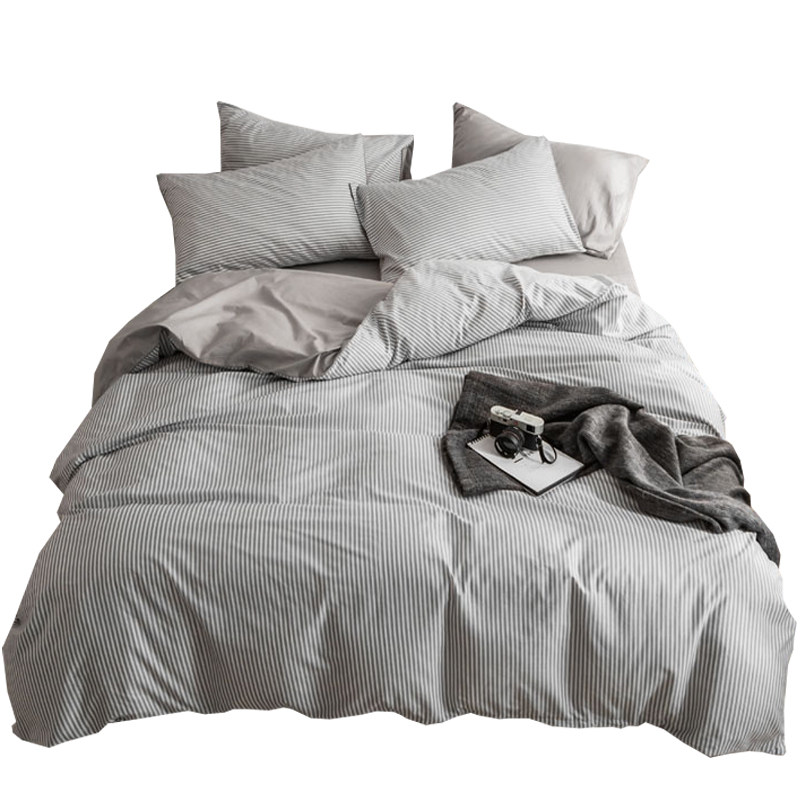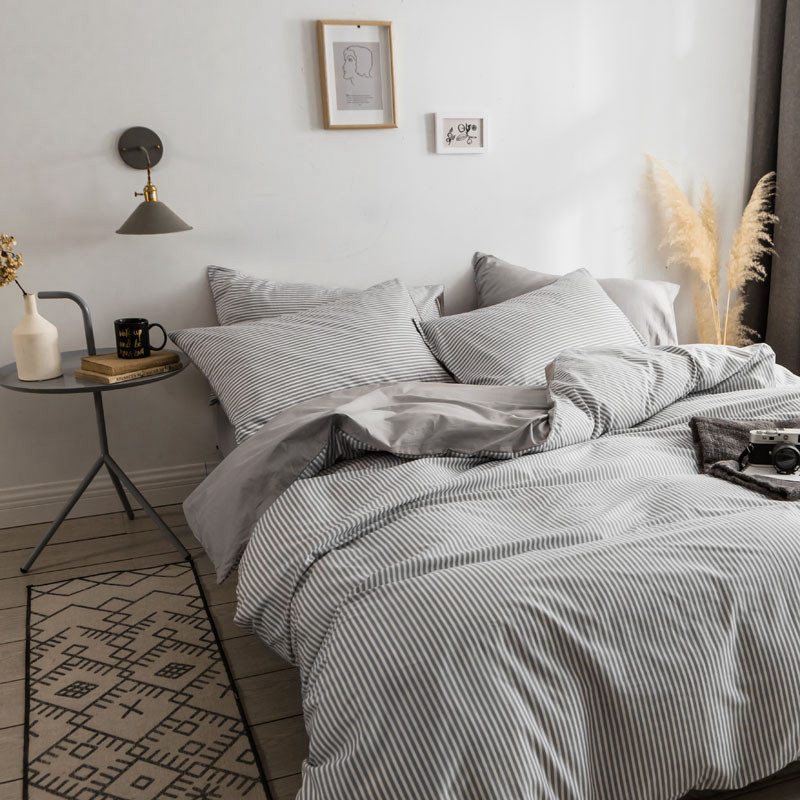 Boyfriend Wind Max Nordic minimalist pure cotton Four-piece striped neutral grey-like board room Three sets Quilt Cover Bed