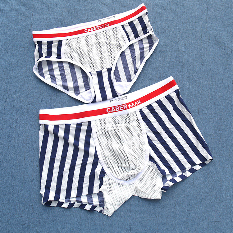 Cabelli couple panties fashion stripes nylon mesh male flat angle female mid waist triangle UM193 UL293