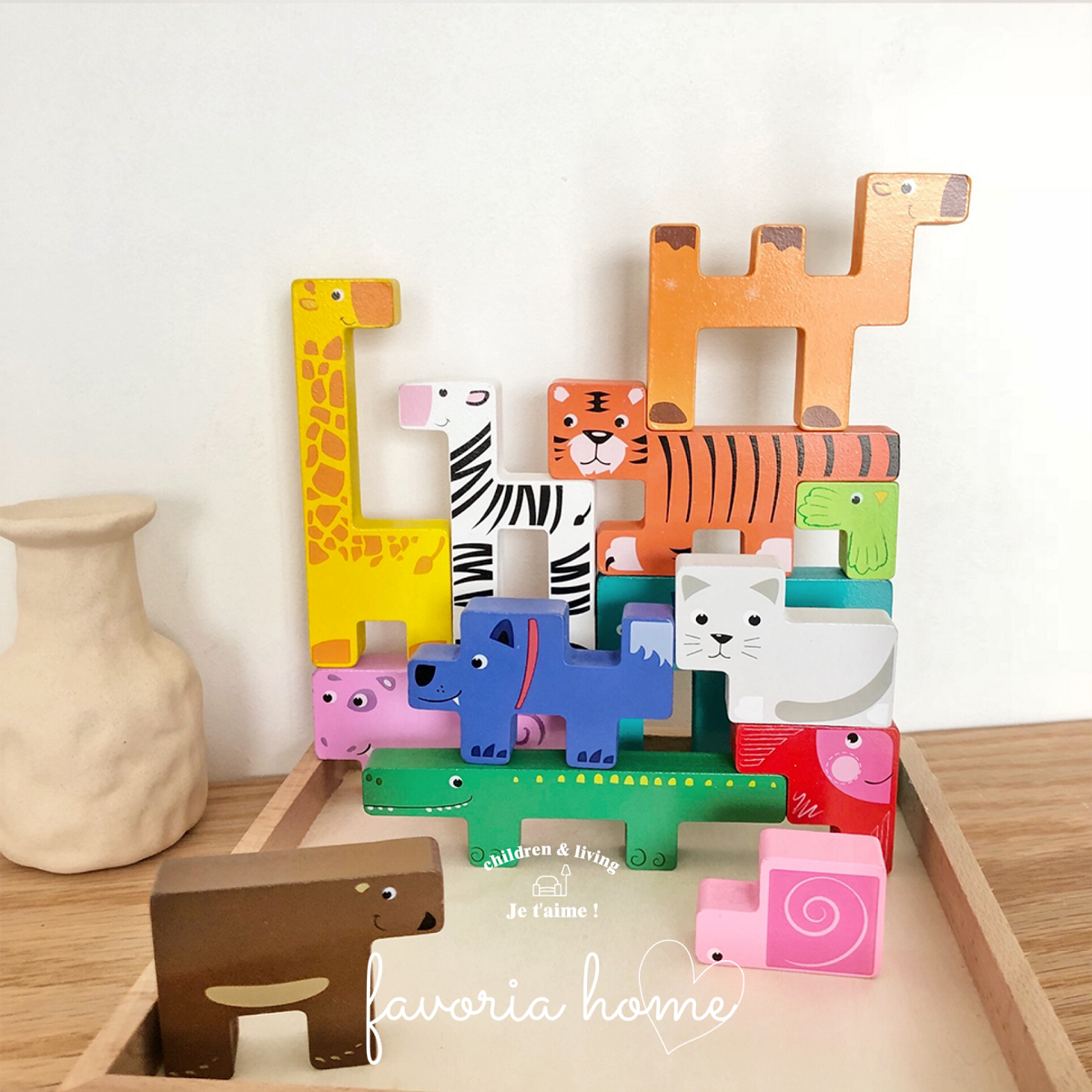 Hanins Children Toys Baby Wooden Animals Puzzle Stack High Building Blocks Kindergarten Mon early education Puzzle Gifts