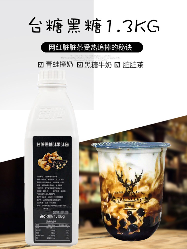 Taiwan produced black sugar syrup pearl mesh red deer corner alley dirty milk tea cup cup of milk tea shop dedicated black sugar raw materials