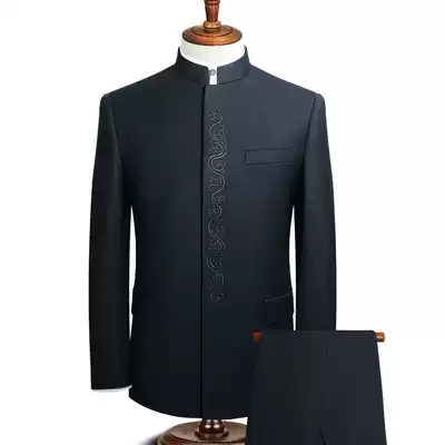 Autumn Zhongshan Men's Suit Xiangyun Embroidery Chinese Collar Slim Dress Chinese Style Men's Zhongshan Clothing Tang Dress
