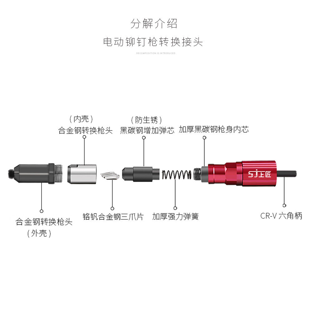Shangjiang electric rivet gun head (A style) Shangjiang electric rivet gun head (A style) 16 8V lithium electric drill Shangjiang electric rivet gun head (A style) 21V lithium electric drill Shangjiang electric rivet gun head (