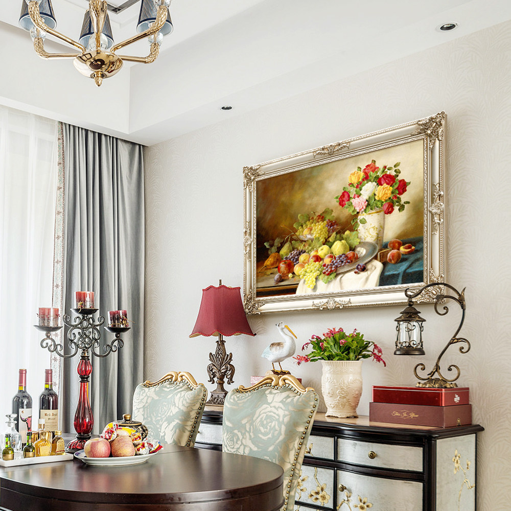 Dining Room Decoration Painting Kitchen Dining Room Decoration Painting Flower Grape Fruit Hanging Painting European-style Atmosphere Light Lavish Finished Oil Painting