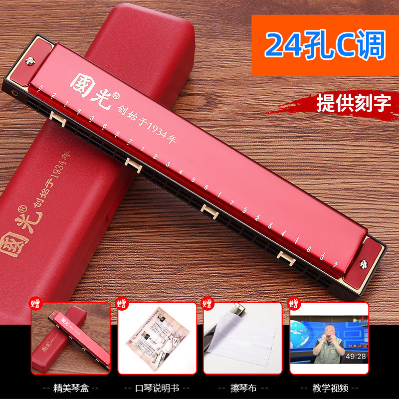 Shanghai Guoguang harmonica 24-hole polyphonic accent non-toxic children students adult beginners playing musical instruments