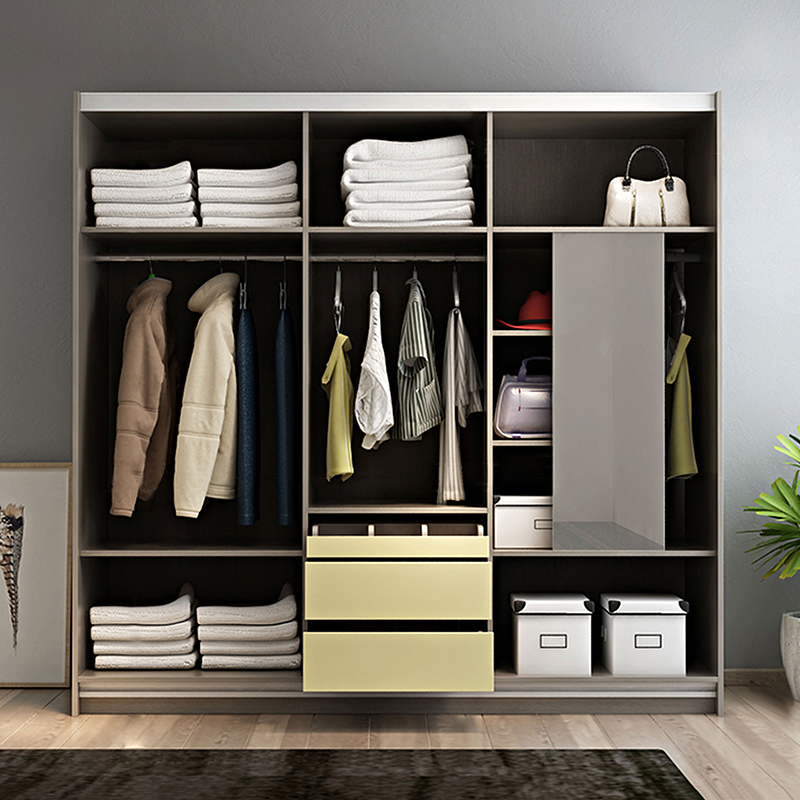 Nordic sliding door sliding door wardrobe modern minimalist three-door overall wardrobe sliding door with mirror large wardrobe bedroom furniture