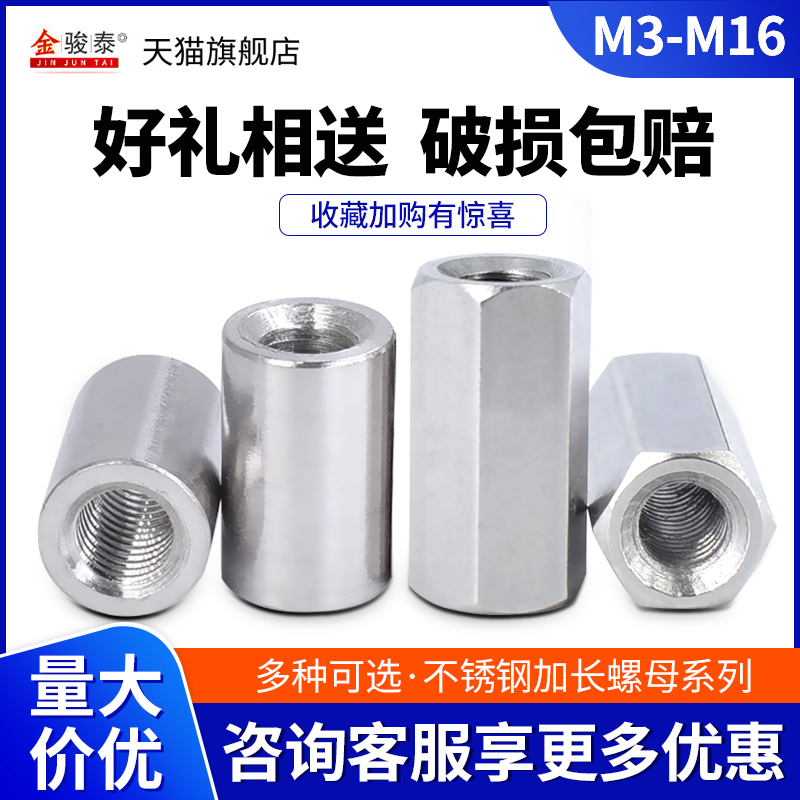 304 201 stainless steel extension cylindrical hex nut screw female connector welded through hole silk tooth nut