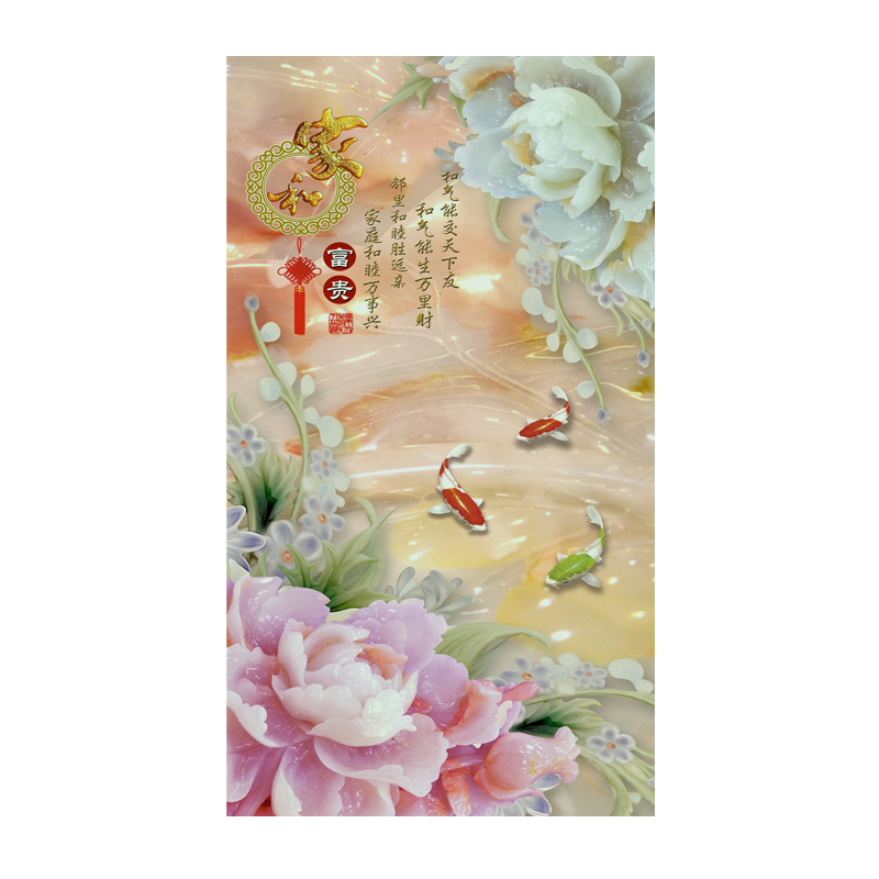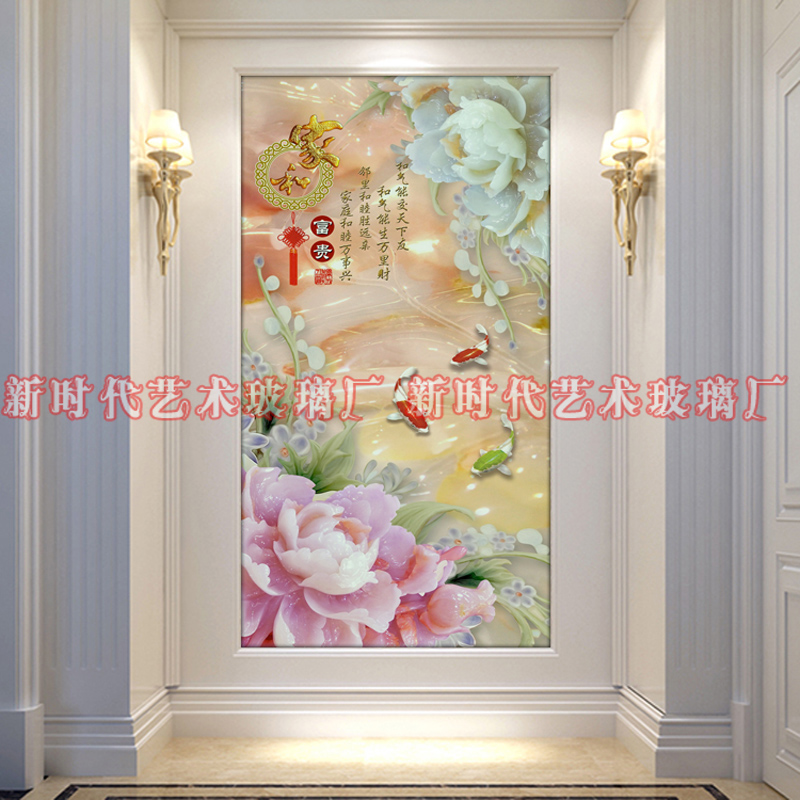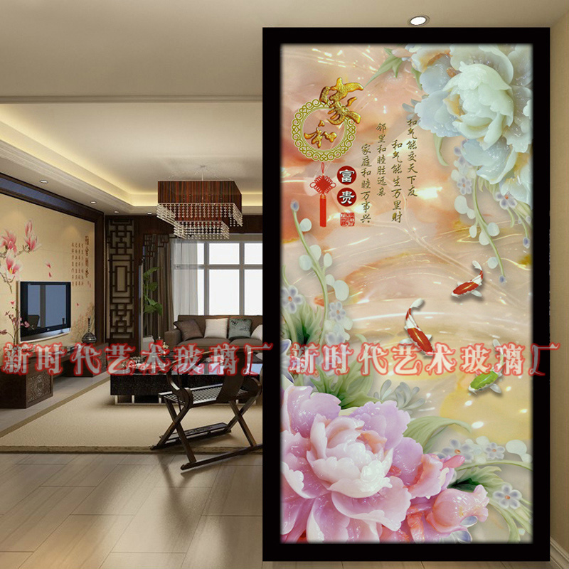 Custom painted art glass partition porch background wall frosted tempering process modern transparent screen peony flower