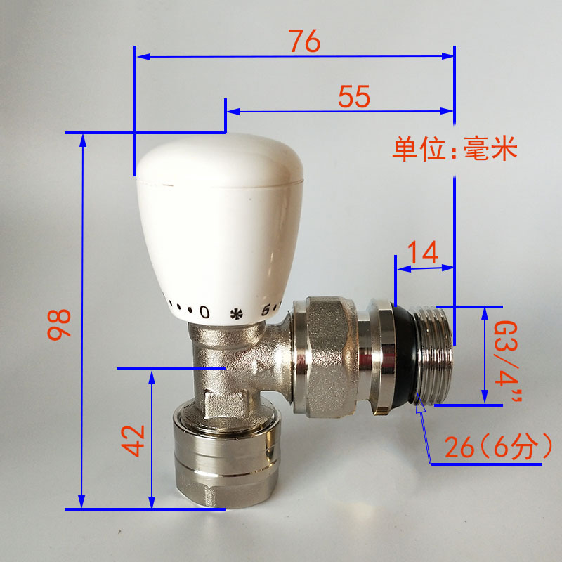 Radiator exposed temperature control valve angle aluminum-plastic 1620 temperature control valve full copper 4 points 6 points heating radiator valve