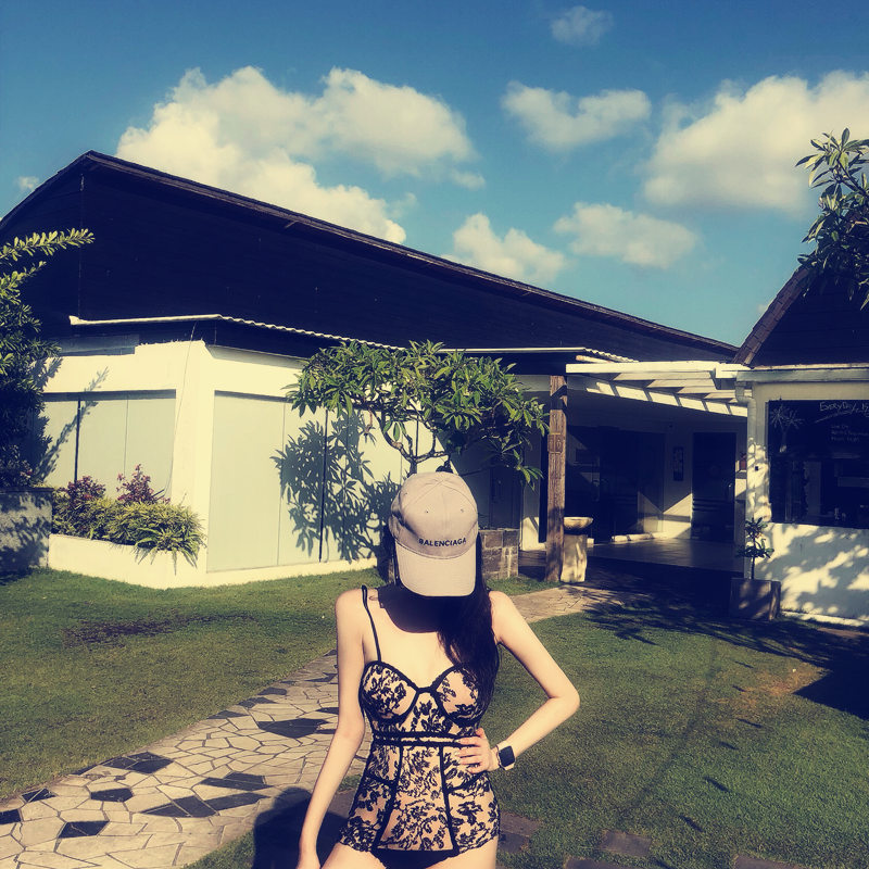 Net Red Identical Swimsuit Women's High-end Perspective Sexy Lace Mesh Yarn Steel Suga for a holiday even with a triangular bikini