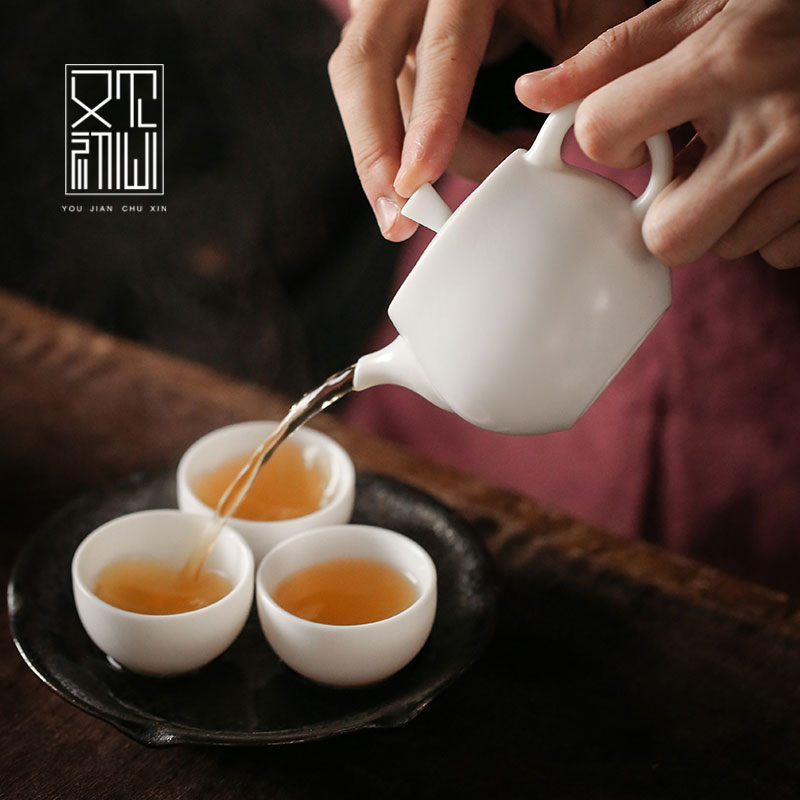 See again Home Deed white Porcelain Teapot Tea Tea Tea tea Foots Kettle Single Pot Pure Manual Kung Fu Ceramic Home Gift