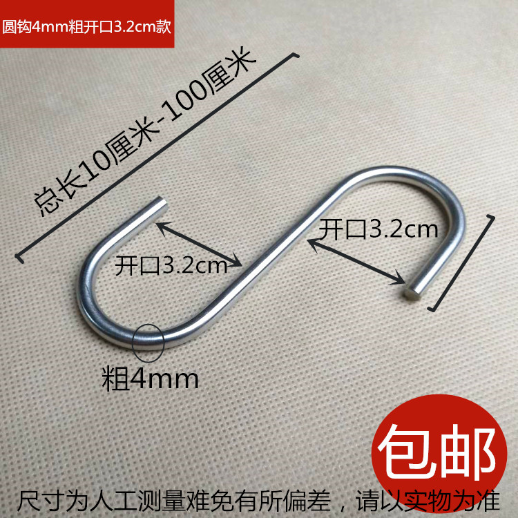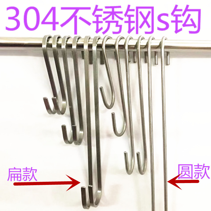 Clothing solid 304 stainless steel thick thick S hook flat hook S-shaped round S hook Clothing store S hook extended direct sales