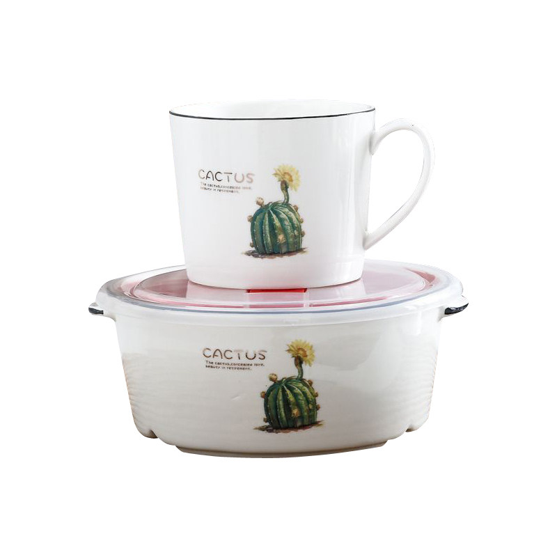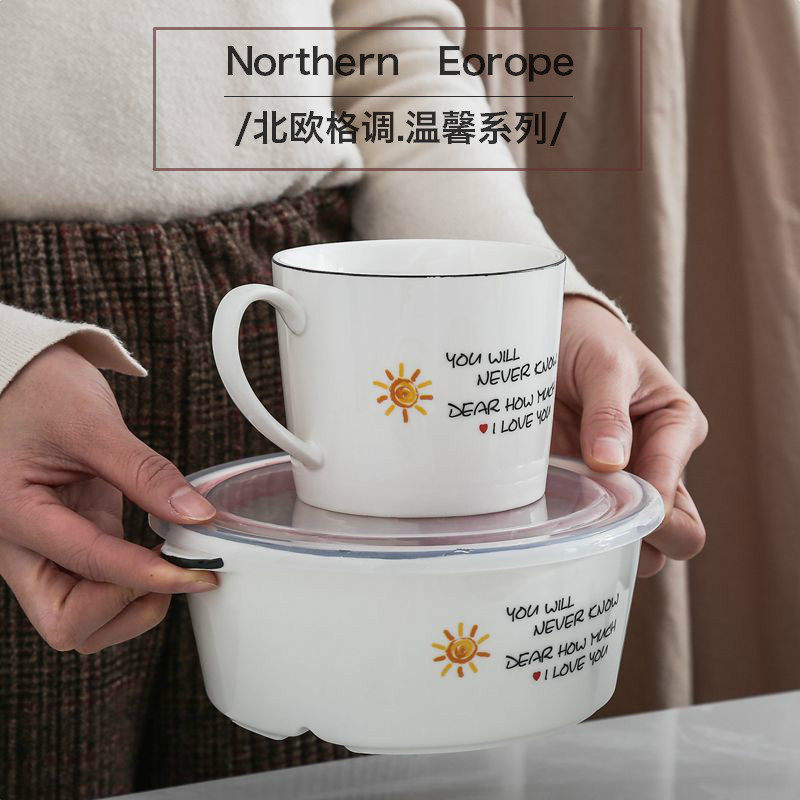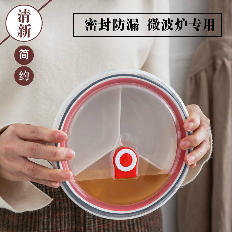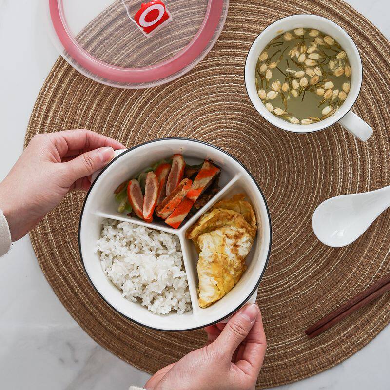 Ceramic Lunch Box Round-shaped Black Line Seal Microwave Oven Separation Dining Bowl Office Workers Lunch Cartridge lid Refreshing Box
