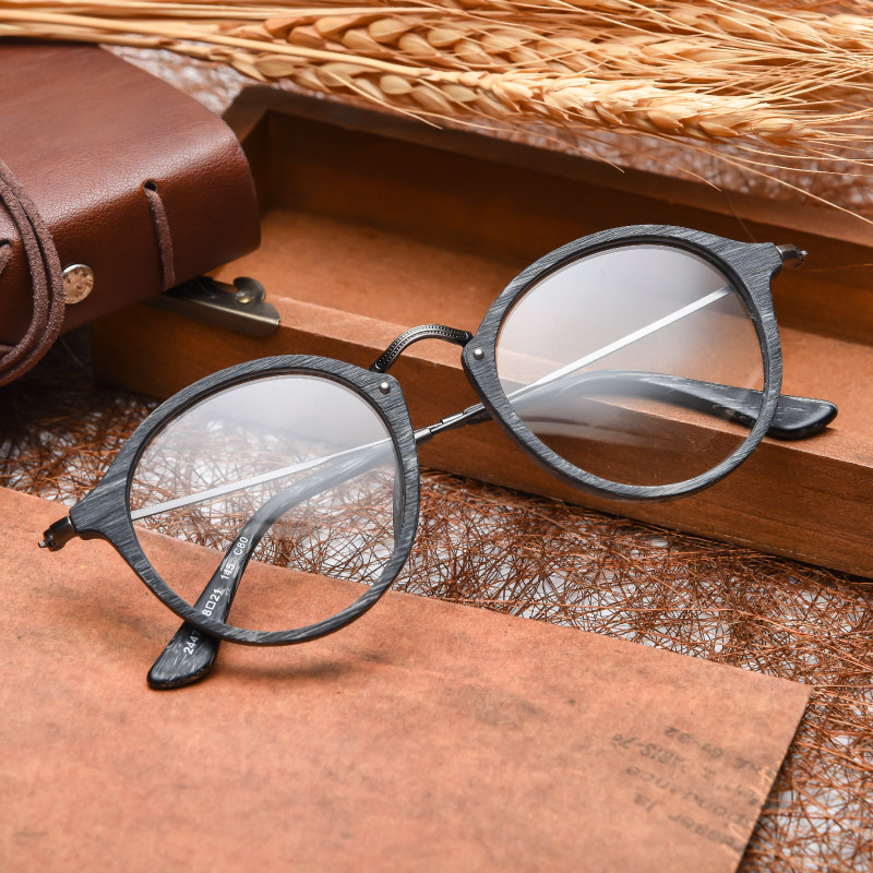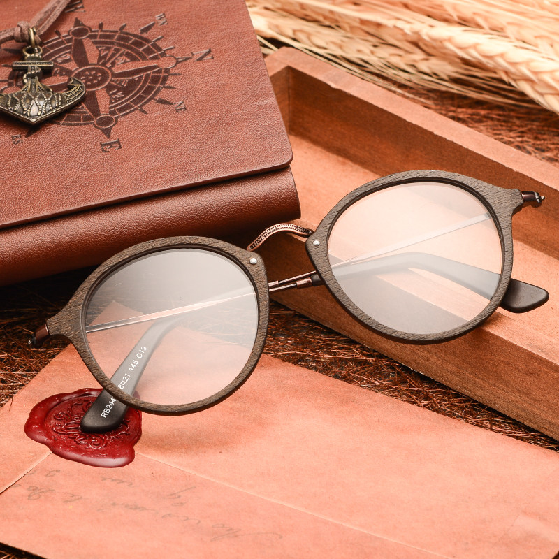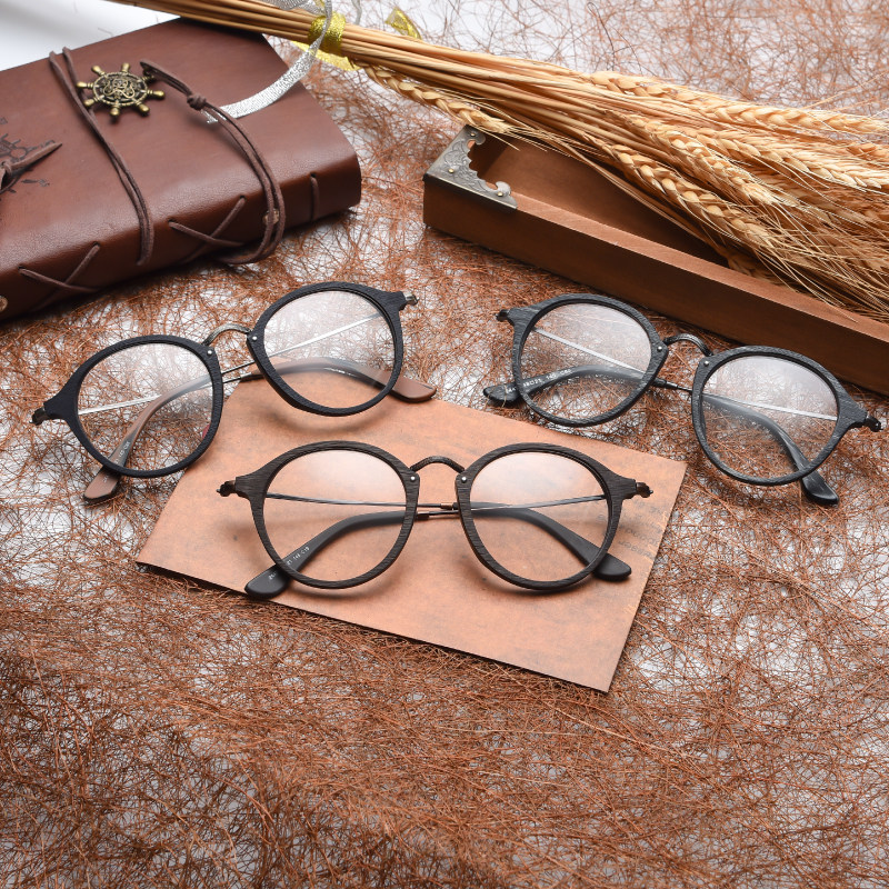 Retro round glasses frame men's net red female myopia wood grain eye frame big face eye socket black frame glasses Korean tide