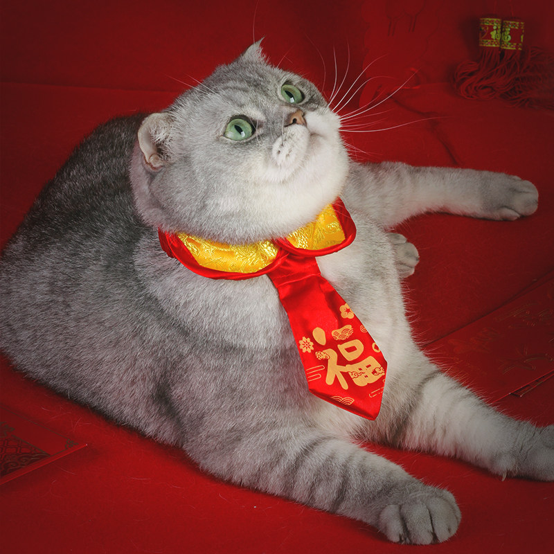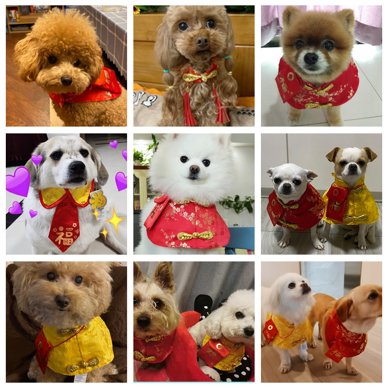 Dog cat New Year clothes Chinese style red envelope decoration small dog bow tie cloak cloak pet New Year clothes