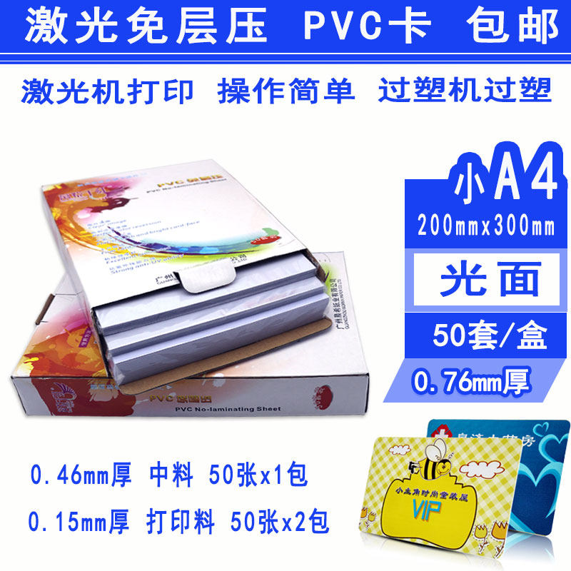 Small A4 laser PVC card 0.76mm thick 50 sets 200mm*300mm large A3 laser PVC card 0.76 thick (15+46+15) 10 sets Small A4 laser PVC card 0.76 thick (trial installation does not return or change) 5 sets