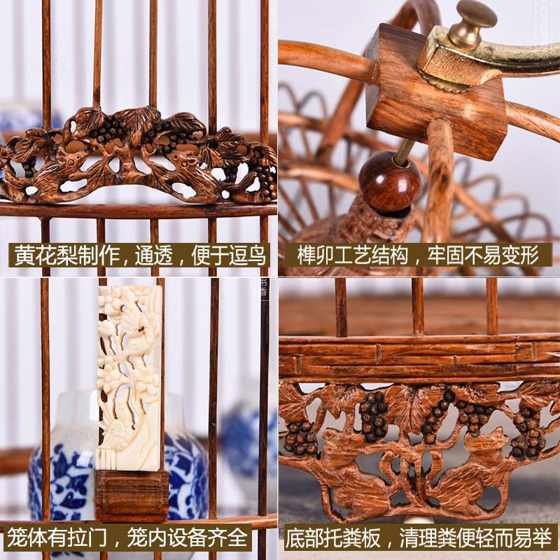 Vietnamese huanghuali bird cage embroidery eye myna thrush solid wood high-grade boutique designer wood high-grade mahogany bird cage