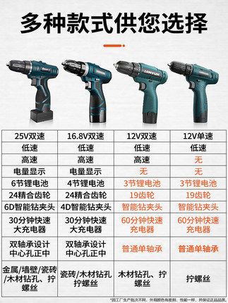 Longyun 25V lithium electric drill Two-speed charging drill electric drill Multi-function household electric screwdriver electric screwdriver electric drill