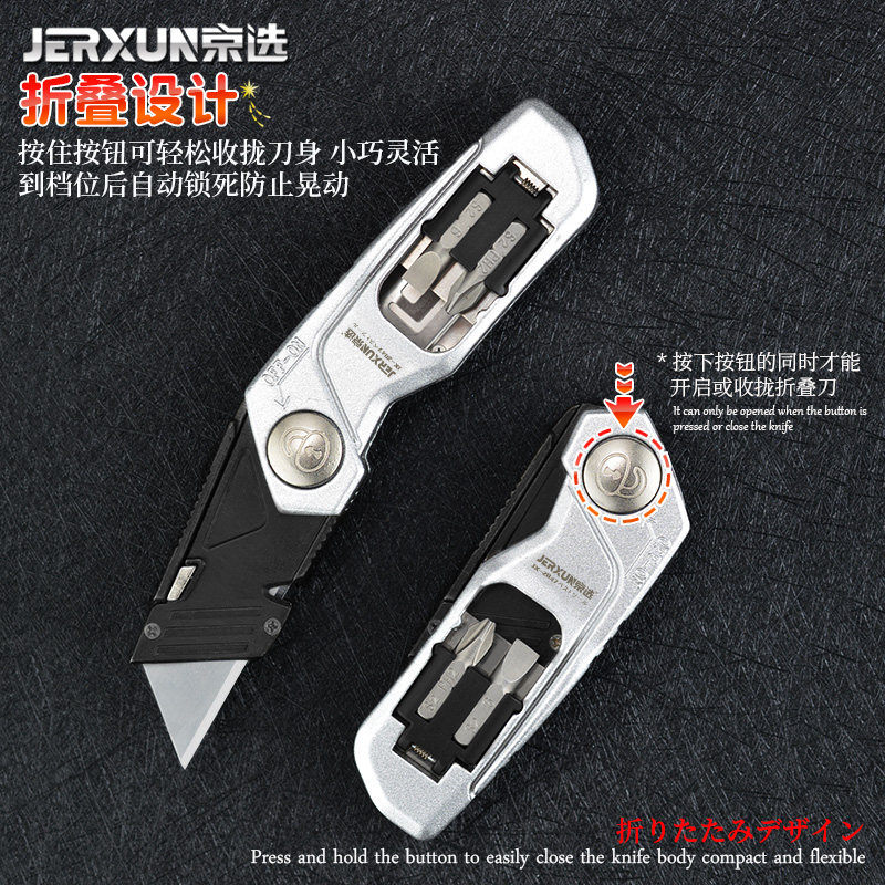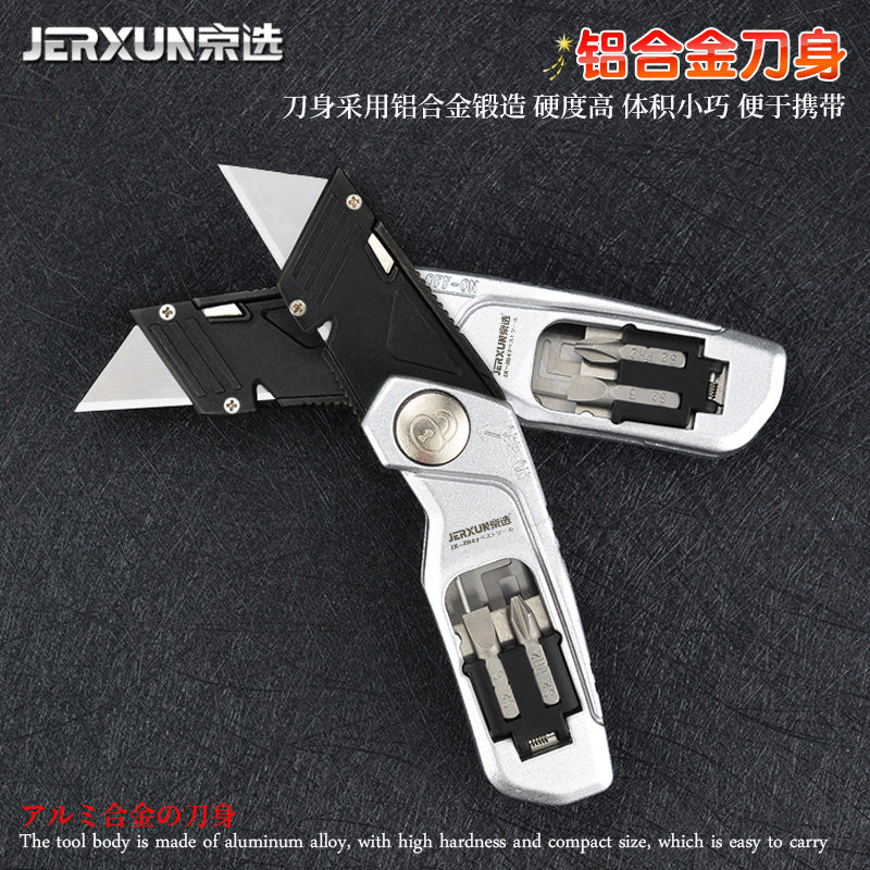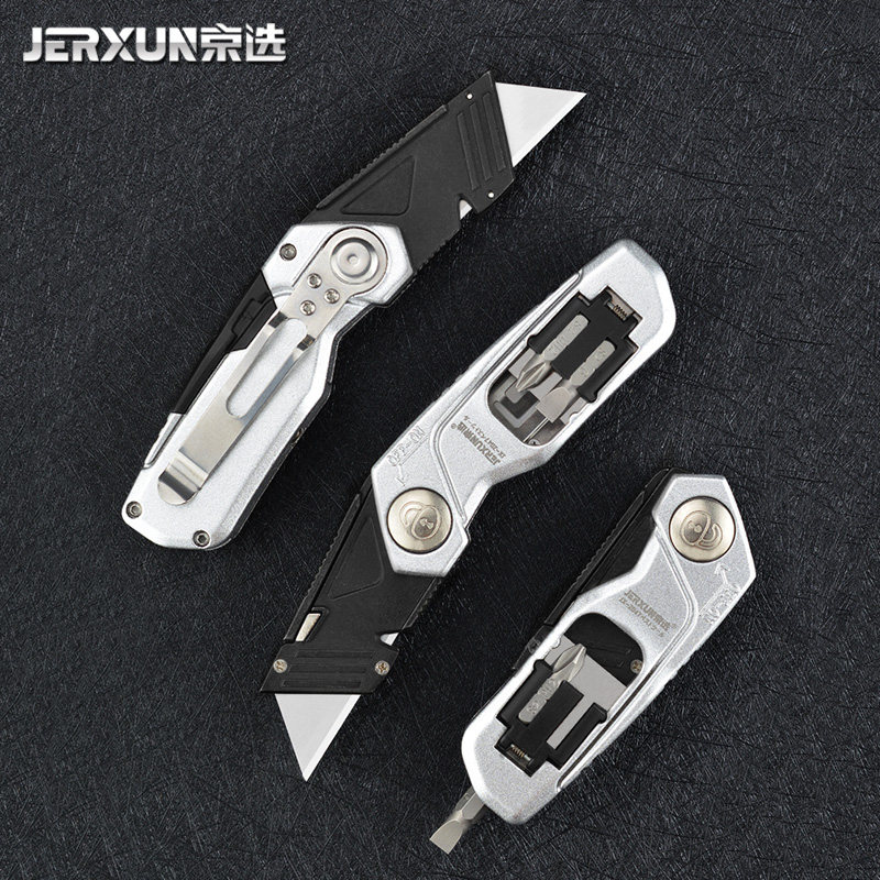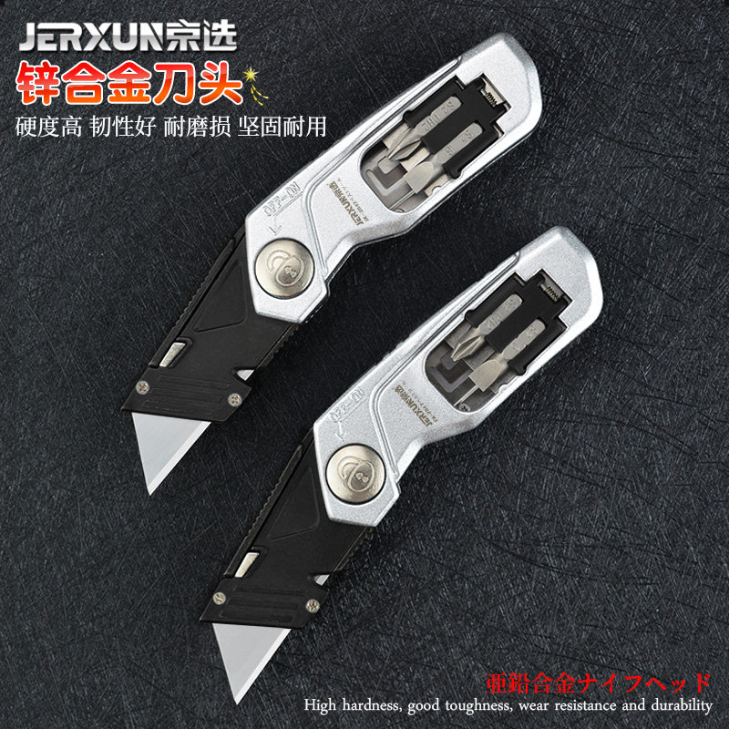 Jingxuan folding art knife cutting paper wallpaper knife multi-function screw grading cone metal high carbon steel open box trapezoidal knife
