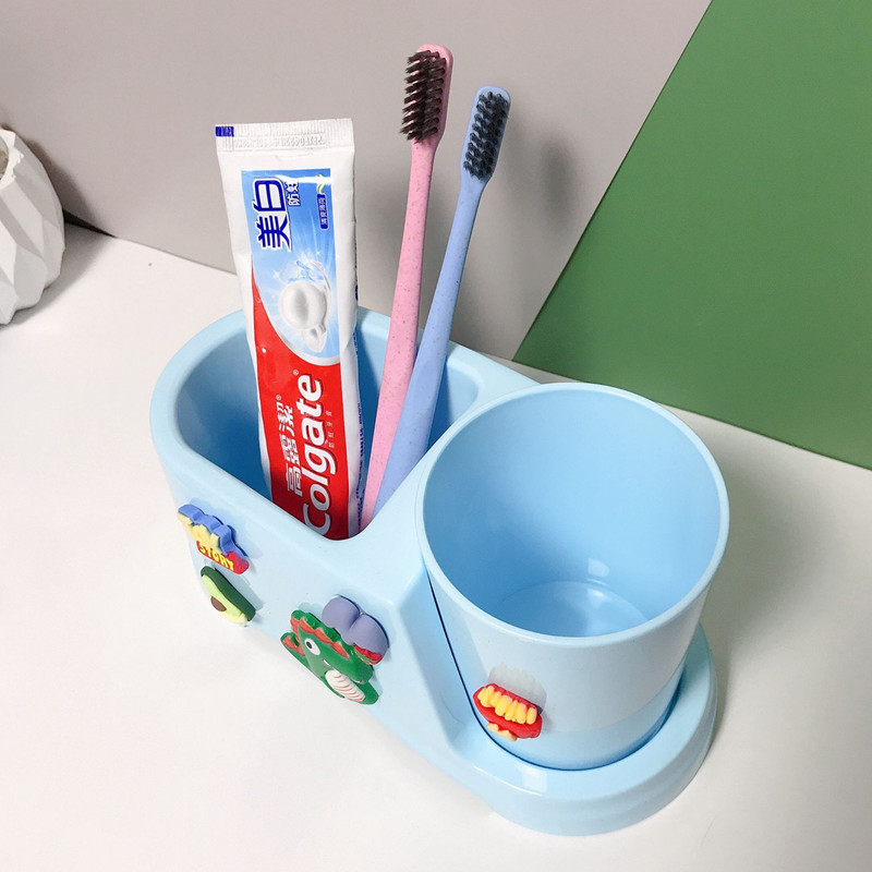 Cute cartoon powder room toothbrush holder Tooth holder placement single set mouthwash cup Children's tooth tank storage cup