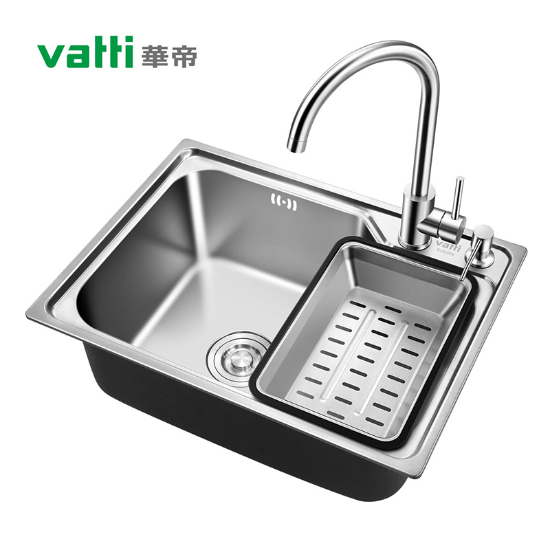 Huadi washing basin 304 stainless steel sink Single sink kitchen manual large dishwashing tank washing pool sink under the table basin