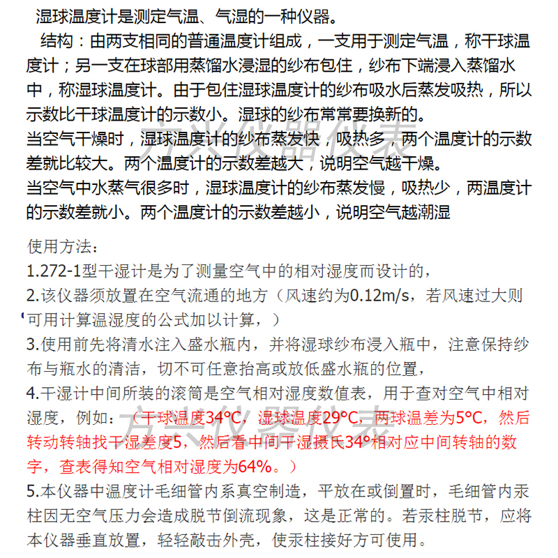 Dry and wet ball temperature and humidity meter Shanghai Huchen 272-1 Uk type dry and wet meter temperature meter high-precision textile workshop used