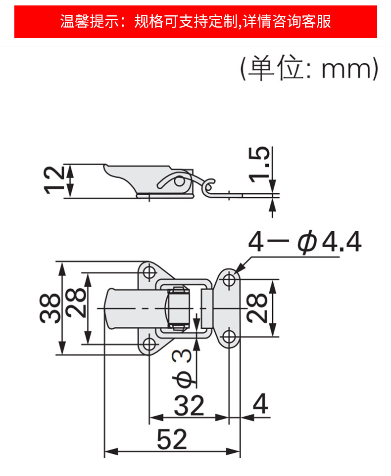 SUS304 stainless steel aircraft buckle Industrial toolbox Heavy flat mouth dovetail buckle fixed buckle DK500B