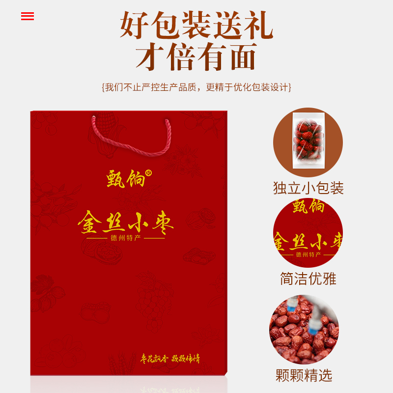 Shandong specialty Dezhou Leling golden silk jujube gift box Zhen Yi disposable first-class red dates can be packaged independently