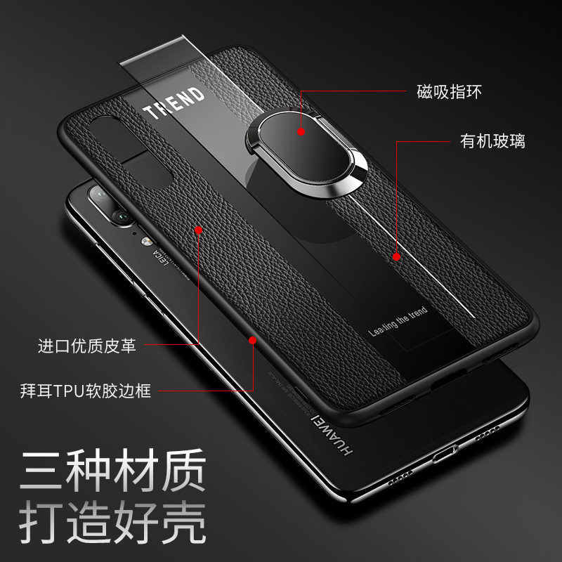 Huawei p20 mobile phone protection shell p20pro protective sleeve silicone ultra slim male huawei tide upscale ring with bracket magnetic suction onboard magnetic shell twenty all-bag anti-fall por Porsche woman