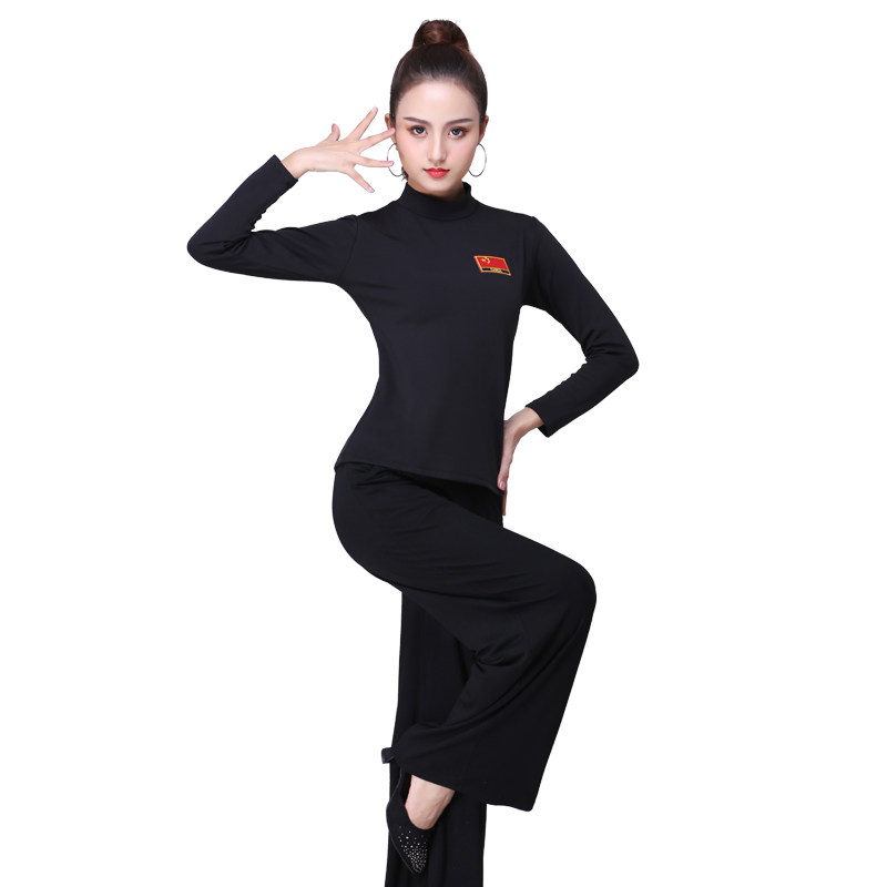 New Latin dance suit national flag suit black adult national standard dance costume women's pants modern square dance practice suit