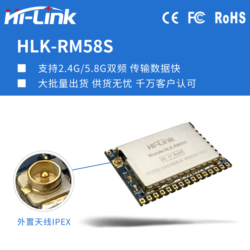 New HLK-RM58S serial port WIFI module 5 8G dual-band communication Bluetooth network module Low power transparent transmission