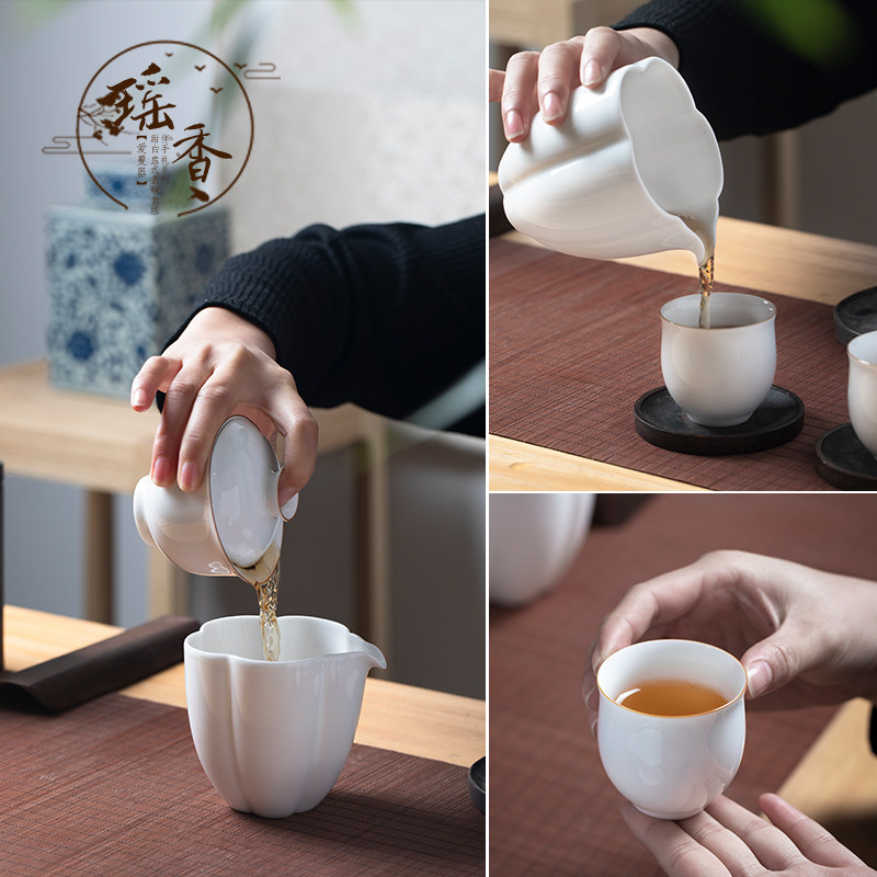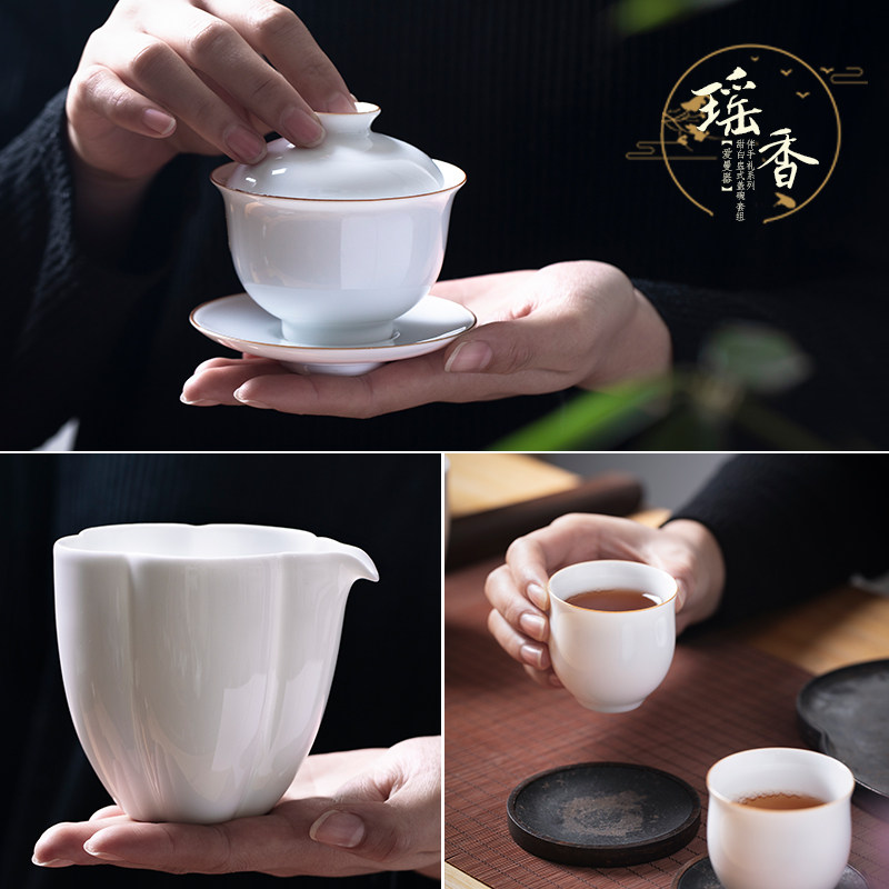 (Yao Xiang) Sweet white thin tire tea bowl Zijinkou three-year-old cover bowl Set Admiralty Cup Flower mouth Male cup Flower type uniform cup