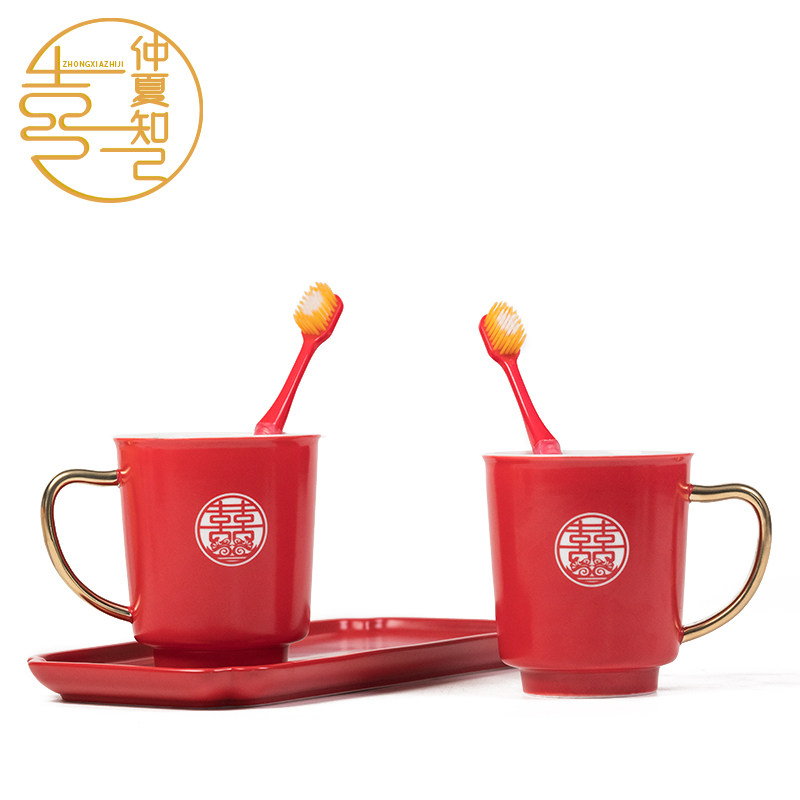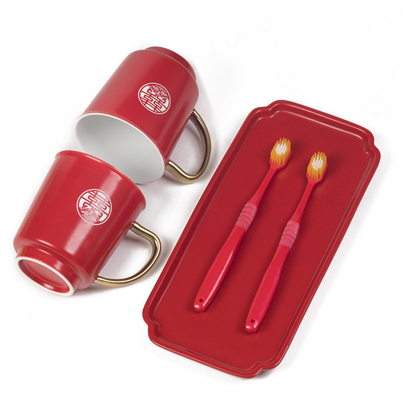 Wedding Soft Hair Toothbrush Adult Home Lovers Home for men and women Toiletry Items Court Wedding Celebration Red Toothbrushes Pair