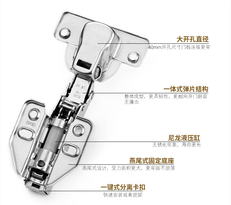 DTC 40mm hinged cup damping hinge-full cover straight bend DTC 40mm hinged cup damping hinge-half cover in bend DTC 40mm hinged cup damper hinge-not covered with big bend