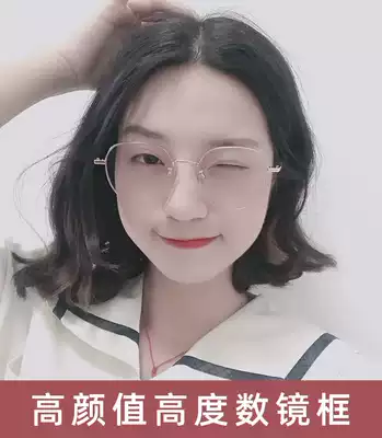 Pure titanium wide-sided polygon glasses frame female retro thick edge ultra-light blue face male height myopia glasses