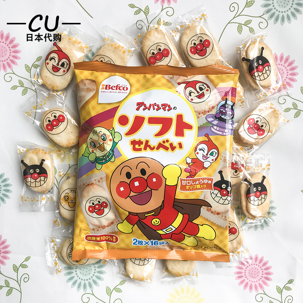 CU Japan Befco Kuriyama Rice fruit baby children's snack bread Superman Senbei rice cake 2 * 16 sachets 1