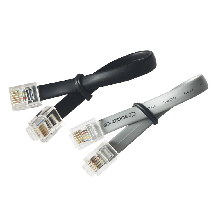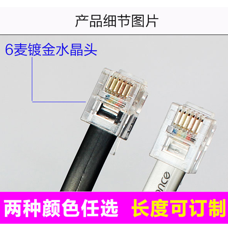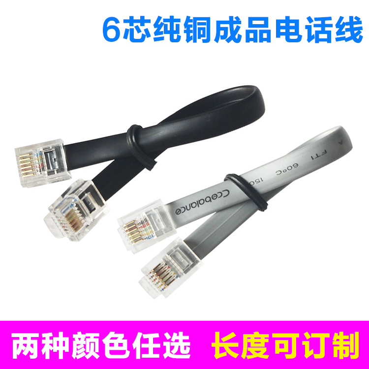 6p6c pure copper multi-strand six-core flat connection line 6 Core telephone line RJ12 with crystal head finished phone jumper
