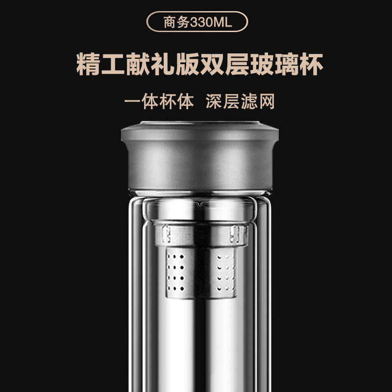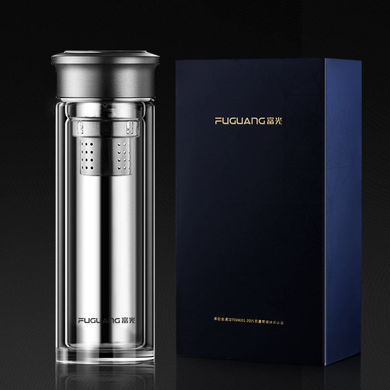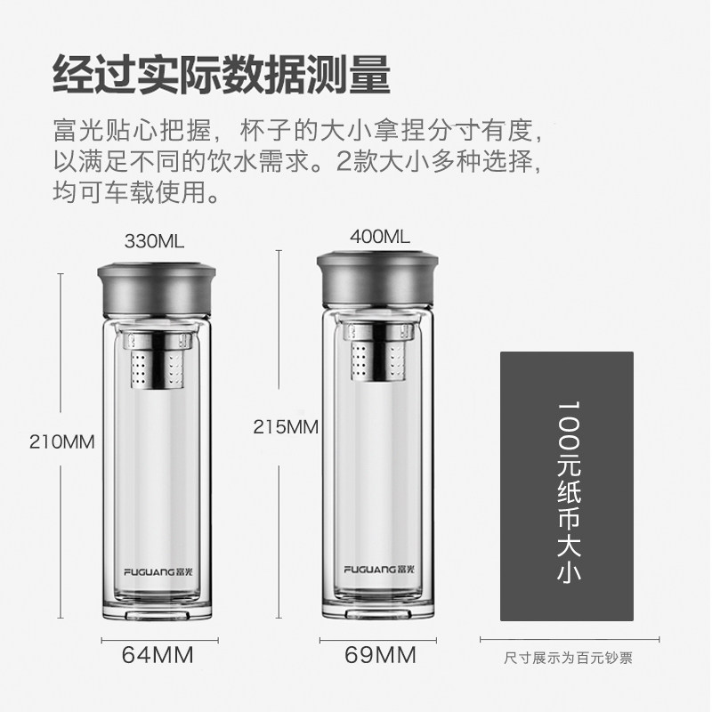 Fuguang double-layer glass transparent portable business office water cup men's thickened car tea cup gift box