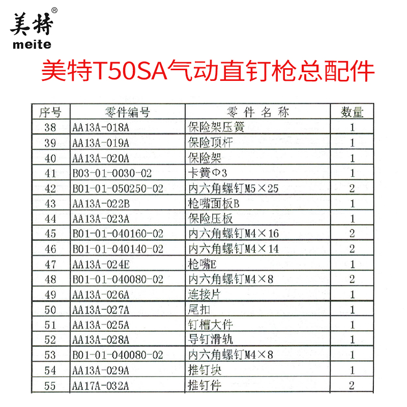 Nail groove small parts C Positioning plate hexagon socket head screw M4*14 (1 pc) Elastic washer M5 (1 pc) Nozzle plug elastic washer M4 Trigger B Trigger pull spring Trigger inner piece B Trigger spring No. 4 guard