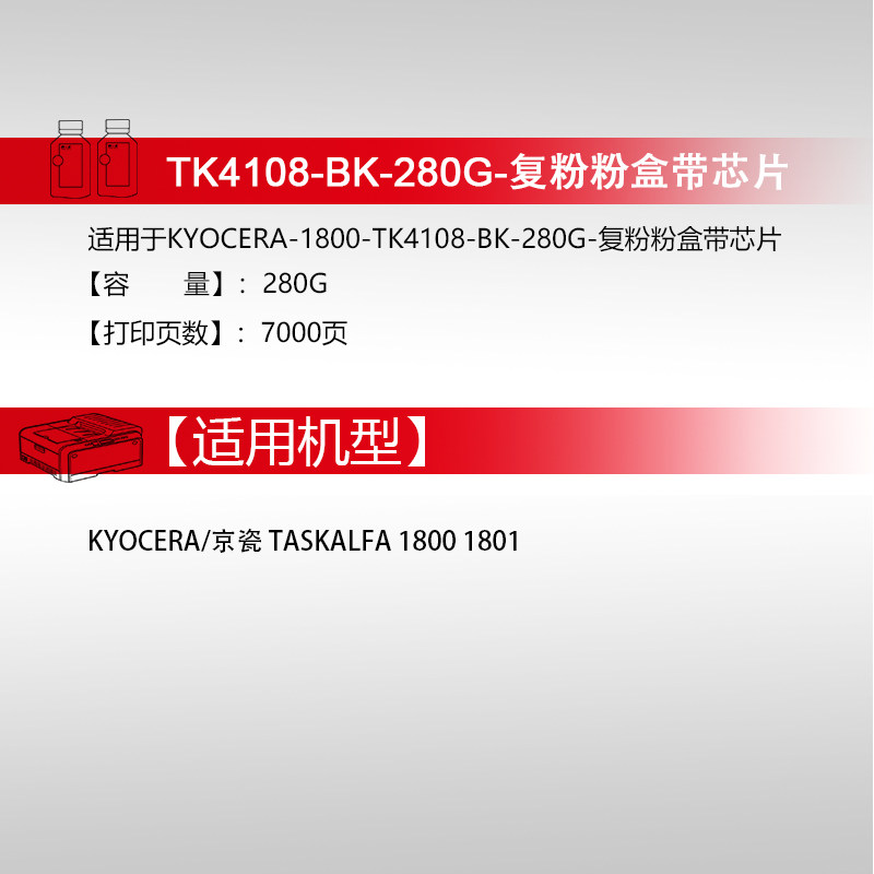 Tianwei TK4108 powder box to apply Kyocera suitable Kyocera 1810 selenium drum powder box TAKalfa 1800 1801 Carbon powder Gink powder Kyocera tk4108